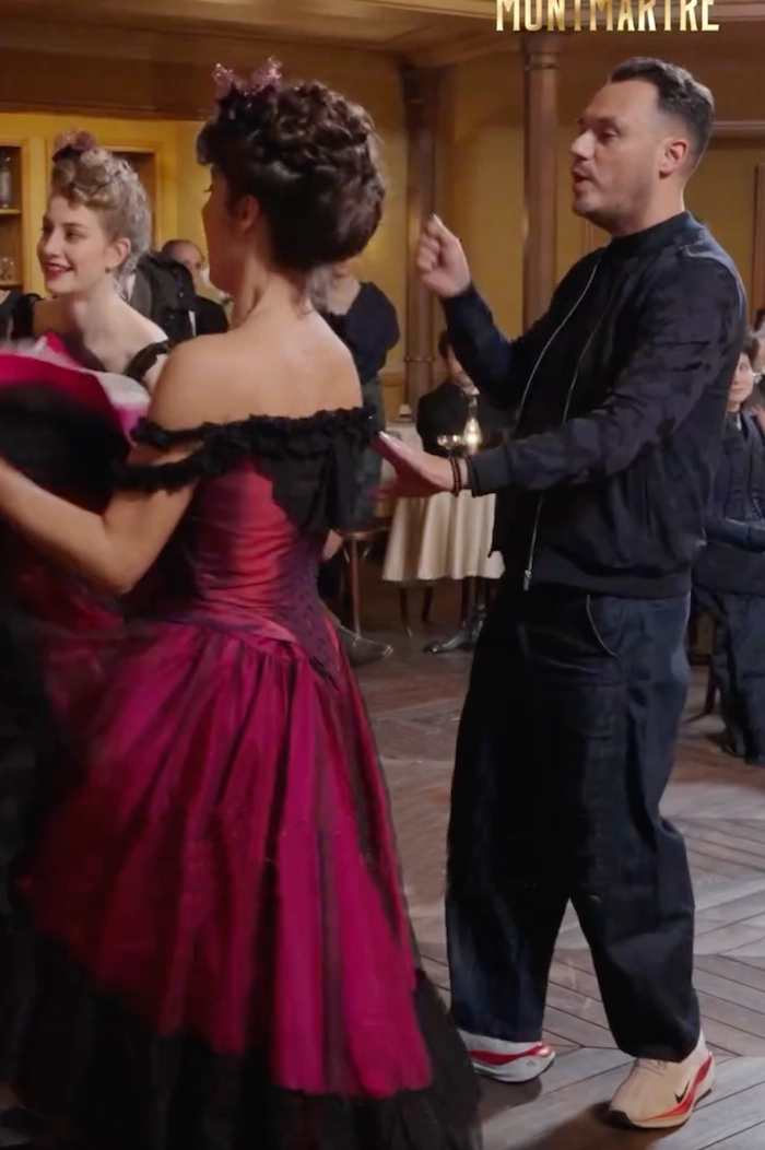 …chaque tableau de French Cancan, réglé au millimètre par le chorégraphe Johan Nus, a nécessité deux jours de tournage. Alice Dufour, ex-danseuse du Crazy Horse, confie : “C’était la première fois que je faisais du French Cancan. C’est une technique très particulière. Cela nécessite de la souplesse, du cardio. C’était fatigant sur le tournage, même pour les professionnelles du Cancan à nos côtés”.